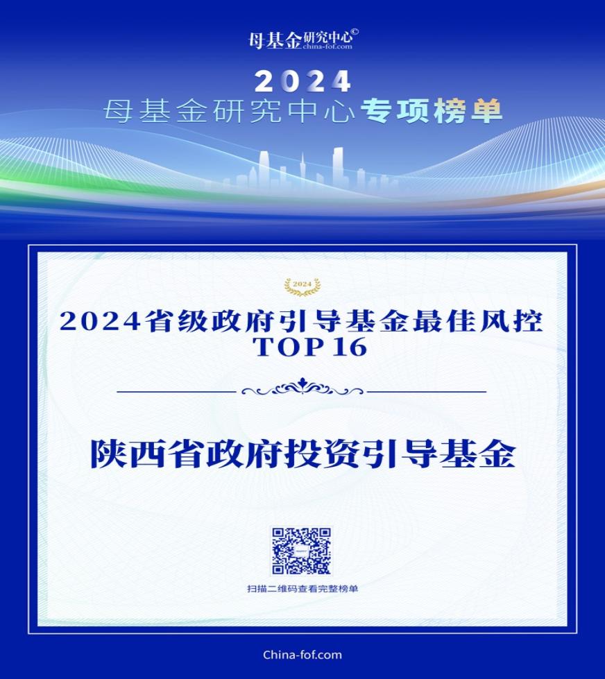 陜西省政府投資引導基金獲母基金研究中心2024省級政府引導基金最佳風(fēng)控TOP30